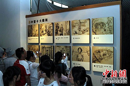 在江西上饶集中营革命烈士纪念馆内,游客被集中营内的“十大酷刑”图片所震撼。 刘占昆 摄