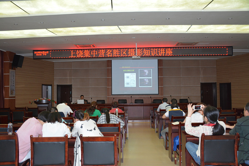 近日,上饶集中营名胜区为了进一步提高广大干部职工的摄影技巧,摄影创作水平,在景区管理中心三楼大会议室举办了为期11课时的摄影知识培讲座,景区全体干部职工积极参加了培训。