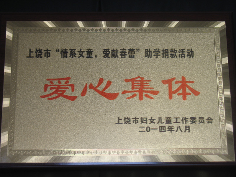 上饶集中营名胜区荣获上饶市“情系女童、爱献春蕾”助学捐款活动爱心集体荣誉称号