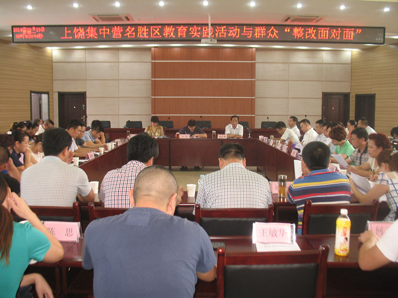 为深入开展党的群众路线教育实践活动,以整改落实的实际成效取得让群众满意的效果,9 月29日上午,上饶集中营名胜区在景区管理中心三楼会议室举办与群众“整改面对面”活动。市委第八督导组有关领导、上饶集中营名胜区班子成员、党员干部职工代表、旅行社代表、游客代表、挂点村代表、茅家岭村群众代表等50余人参加了活动。