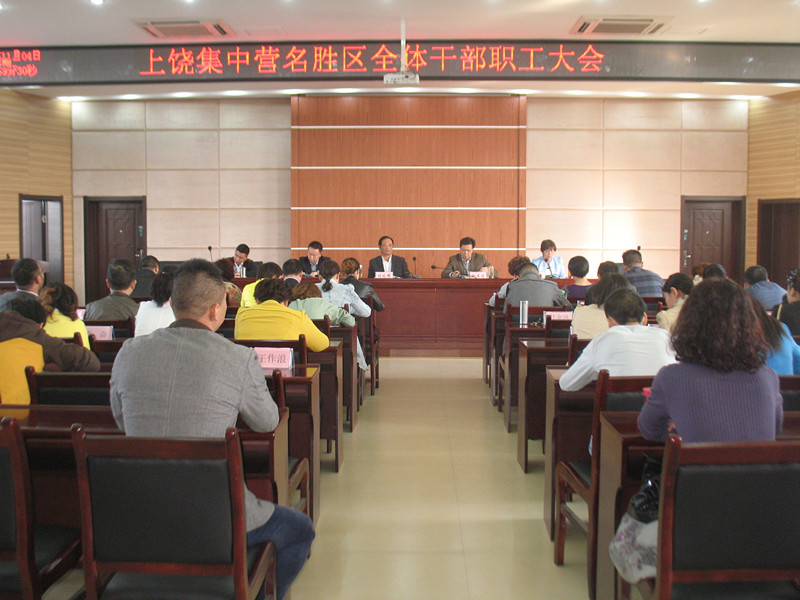 为全面推进2014年度党风廉政建设社会评价工作,提高群众对社会评价工作的知晓度,保证民调工作顺利进行,上饶集中营名胜区根据市落实党风廉政建设责任制暨惩治和预防腐败体系建设工作领导小组办公室《关于积极做好支持配合党风廉政建设社会评价工作的通知》等的要求,于2014年11月4日下午召开全体干部职工大会,专门组织学习《上饶市党风廉政建设社会评价工作宣传提纲》,宣传引导干部职工积极参与、支持配合民意调查。