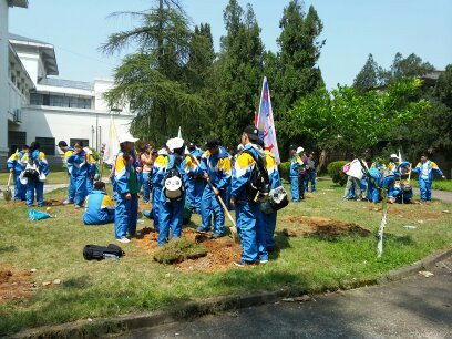 下午,在上饶集中营名胜区管委会领导的大力支持下,全体师生来到上饶集中营革命烈士纪念馆后面的一块空地上,进行全体师生共植感恩树活动。上饶集中营名胜区园林管理局副局长张华亲临现场指导。在植树现场,同学们三五人一组,分工有序,共植感恩树,整个现场热火朝天。同学们种下的是十八颗桂花树,这十八棵桂花树,代表着感恩和希望,承载着上饶市四中2014级10班的全体师生的爱心与希望,必将如学生一般茁壮成长,生机盎然。