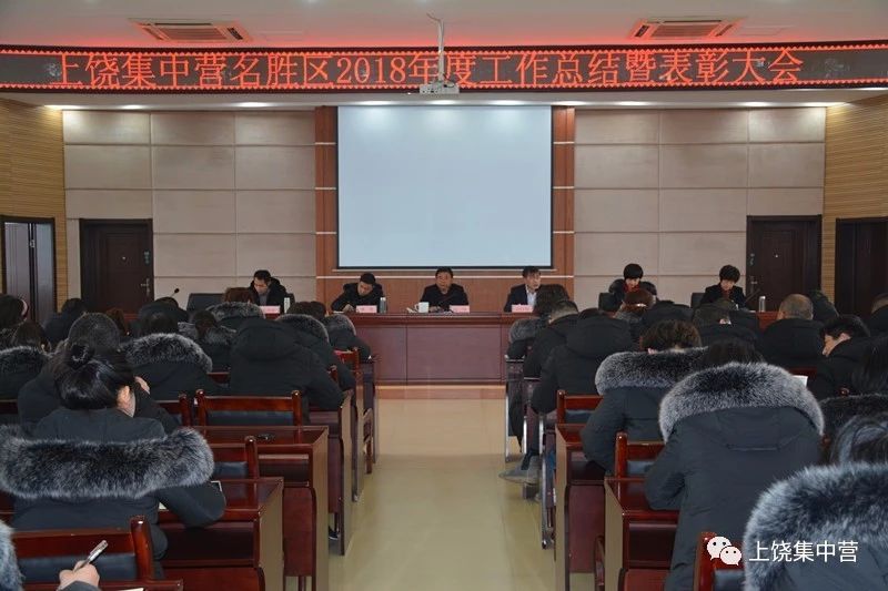 1月30日,在新春佳节即将到来之际,上饶集中营名胜区干部职工欢聚一堂,举行2018年度工作总结暨表彰大会,总结回顾过去一年的工作成绩和经验,表彰奖励先进集体和先进个人,部署2019年工作安排。名胜区领导班子成员、干部职工等60余人参加会议。会议由党工委委员、管委会副主任李民主持。