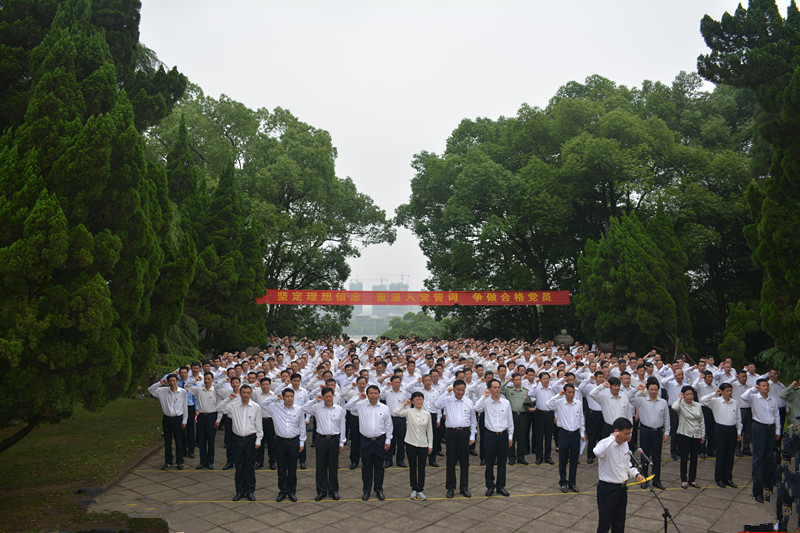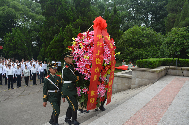 为隆重纪念中国共产党成立九十五周年,扎实推进“两学一做”学习教育活动,5月27日上午,上饶市四套班子党员领导干部、上饶市军分区、市法院、市检查院、上饶经开区主要领导,市委各部门、市直各单位、企事业单位、各人民团体、市工商联党委(党组)主要负责同志,以及驻饶部队党员代表,信州区四套班子党员领导干部、基层党员干部代表等,共计300余人来到上饶集中营革命烈士纪念碑前开展“坚定理想信念,重温入党誓词”活动,深切缅怀革命先烈的丰功伟绩,弘扬革命先烈的崇高精神,牢记共产党员的第一身份,永葆共产党人的政治本色。
