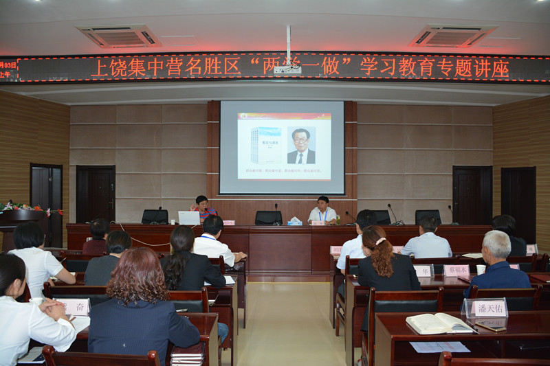 为深入贯彻落实中央、省委、市委关于在全体党员中开展“两学一做”学习教育有关精神,教育引导广大党员遵守党章党规党纪,以习近平总书记系列讲话精神武装头脑,指导实践,推动工作,加强党性修养,坚定理想信念。6月3日上午,上饶集中营名胜区组织开展“两学一做”专题讲座。名胜区领导班子成员、各支部书记、各部门负责人和全体党员干部参加了学习。