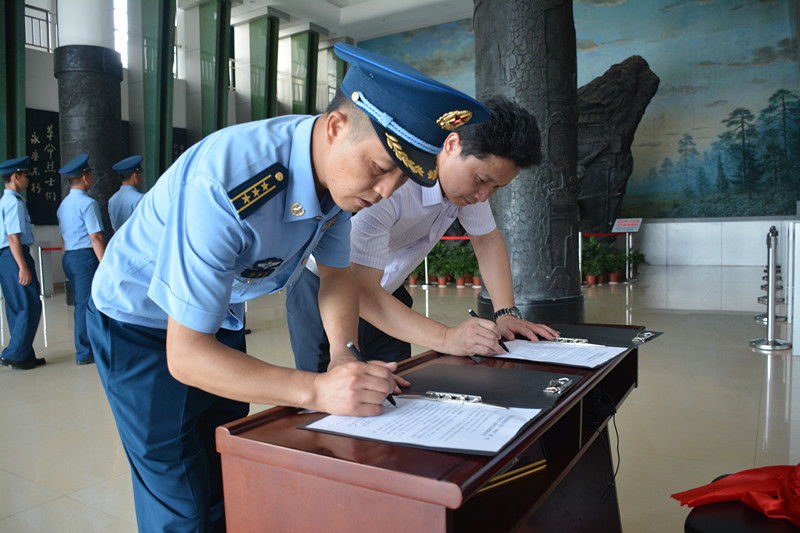 揭牌仪式后,中国人民解放军94863部队政委胡新文、上饶集中营名胜区管委会主任胡洋明签订了合作协议。