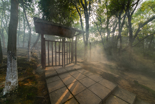 茅家岭监狱旧址位于茅家岭村,原先是一座由古老的“葛仙庙”, 1939年夏开始,国民党第三战区特务机关政治部情报专员室强占来改为秘密监狱,即开始关押从东南各省搜捕来的共产党人和其他抗日爱国进步人士。皖南事变后,把大批最坚定、认为是最不堪“感化”的革命志士,轮番关押到这里“熔化”。这座监狱是上饶集中营最黑暗、最残酷的“狱中之狱”。