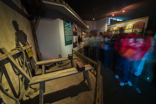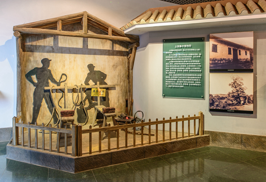 这个展厅主要用图片、图文影印件、文字、漫画、沙盘等形式,回顾历史背景,介绍当年抗日战争形势、新四军组建历程、皖南事变发生经过;对上饶集中营的设立、各监狱旧址、刑具、刑罚,作了比较详尽的展示。走进这个展厅,您将看到当年上饶集中营触目惊心的黑幕。本厅分为铁军出山、千古奇冤和人间地狱三部分。