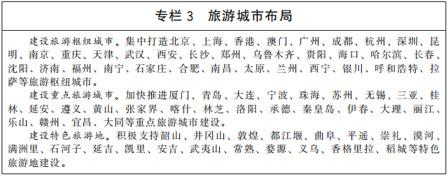 建设一批旅游枢纽城市,逐步完善综合交通服务功能,提升对区域旅游的辐射带动作用。支持桂林等地建设世界级旅游城市,打造一批重点旅游城市、特色旅游地。