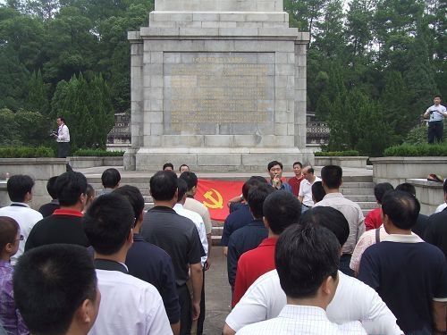 在革命烈士纪念碑前,全体党员又一次举起右手,重温中国共产党入党誓言,并向先烈们敬献了花圈,表达了我们的敬意和怀念。
