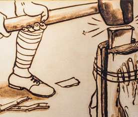 火:用烧红的铁板或铁条,灼烙身体