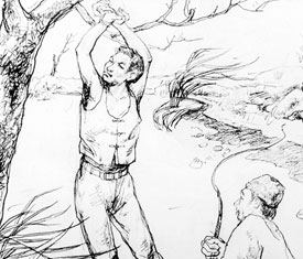 猴子攀桩:将一根粗大的木桩打入地下,在其顶部劈开成叉,然后用...