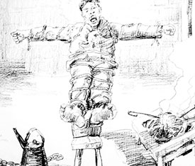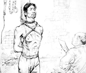 木:坐老虎凳或用木棍打