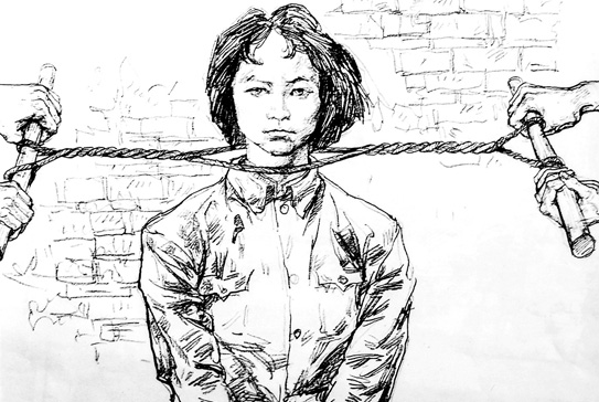 “绞”:用绳索绑勒颈脖